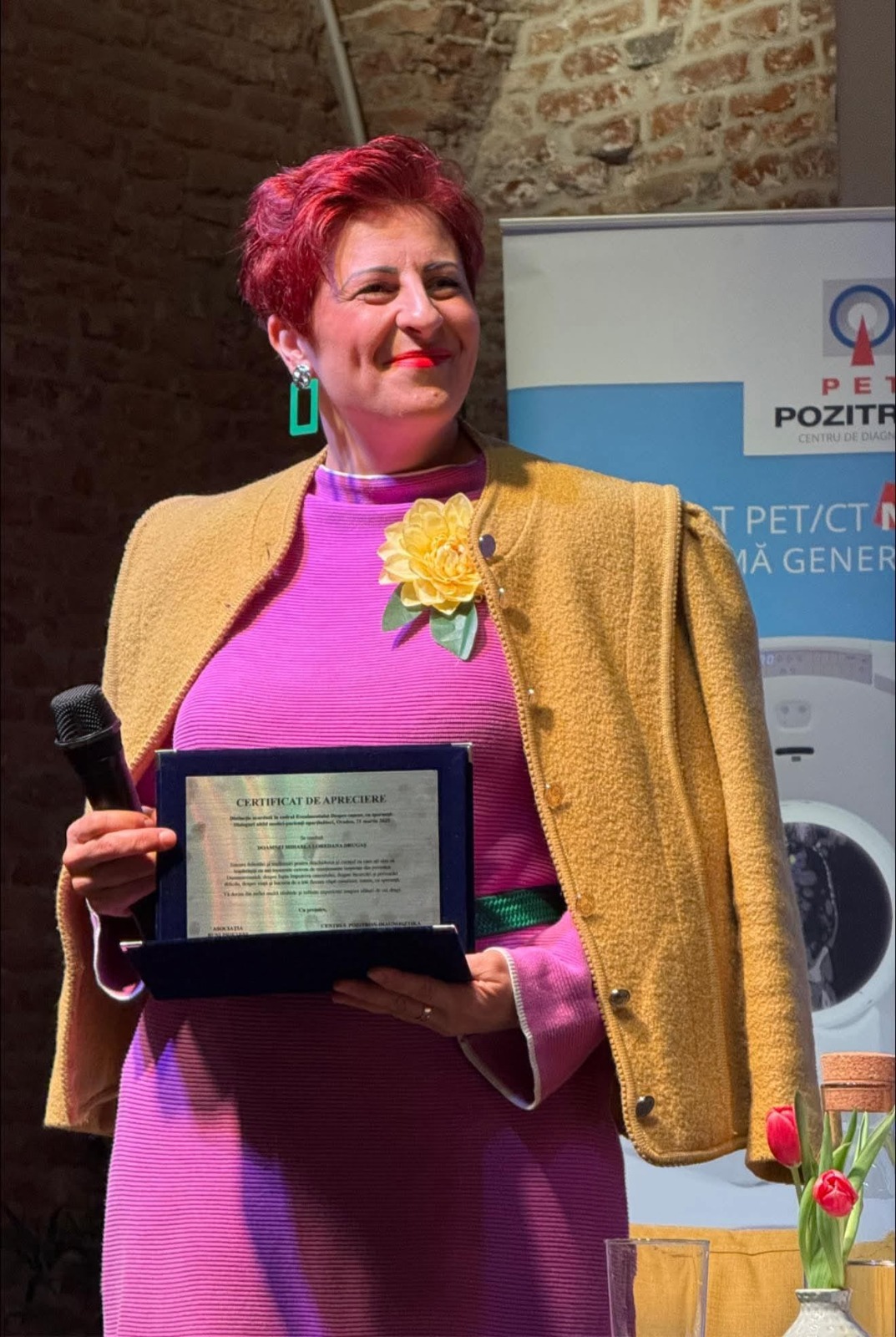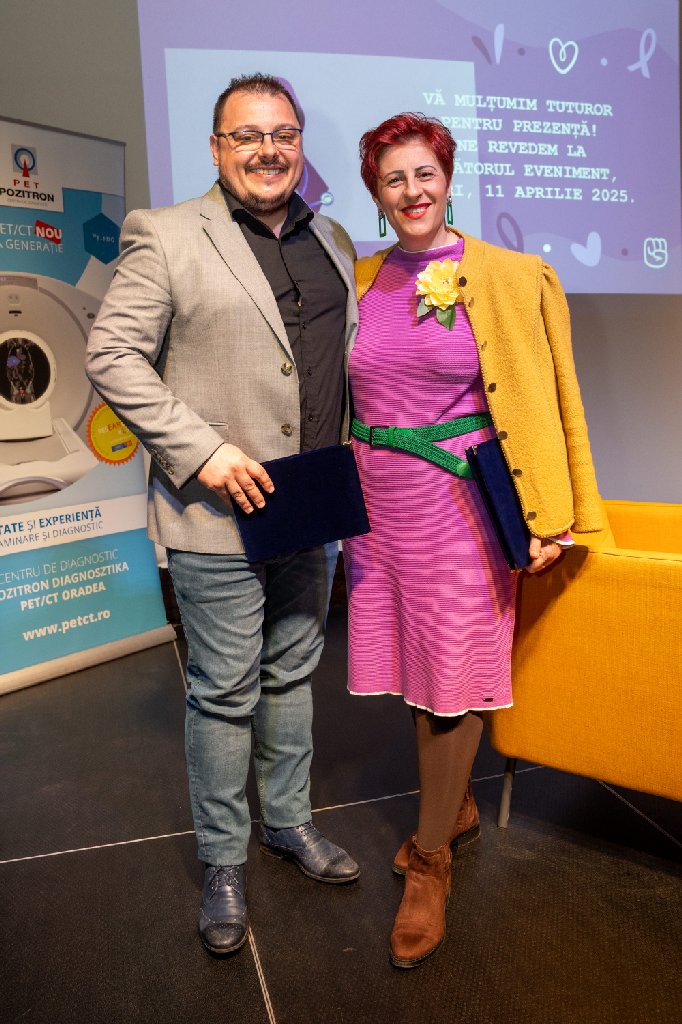Cel de-al doilea invitat, doamna Mihaela Loredana Drugaș, recent diagnosticată, a vorbit deschis despre afecțiunea sa, cu accent pe decizia proprie de a trăi fiecare zi cu bucurie. În semn de apreciere pentru curajul de a se destăinui, organizatorii i-au dăruit o plachetă pentru a păstra amintirea acestor clipe prețioase.