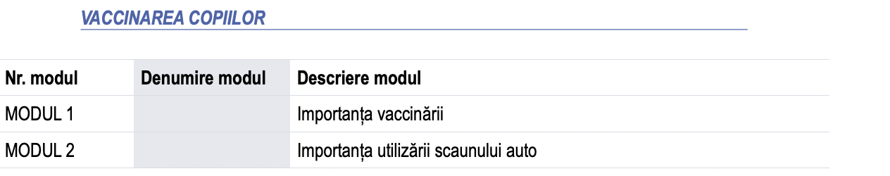 Modulul V, data de 11 Martie 2024 (Luni) Importanta vaccinarii 18:00; importanța utilizării scaunului auto