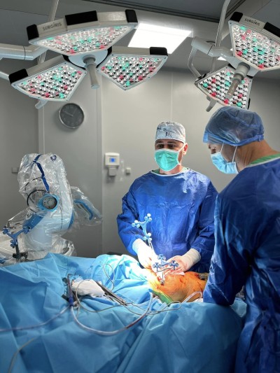O pacientă în vârstă de 73 de ani a fost operată pentru gonartroză cu robotul ROSA de echipa coordonată de dr. COSTE REMUS, medic primar Ortopedie-Traumatologie.