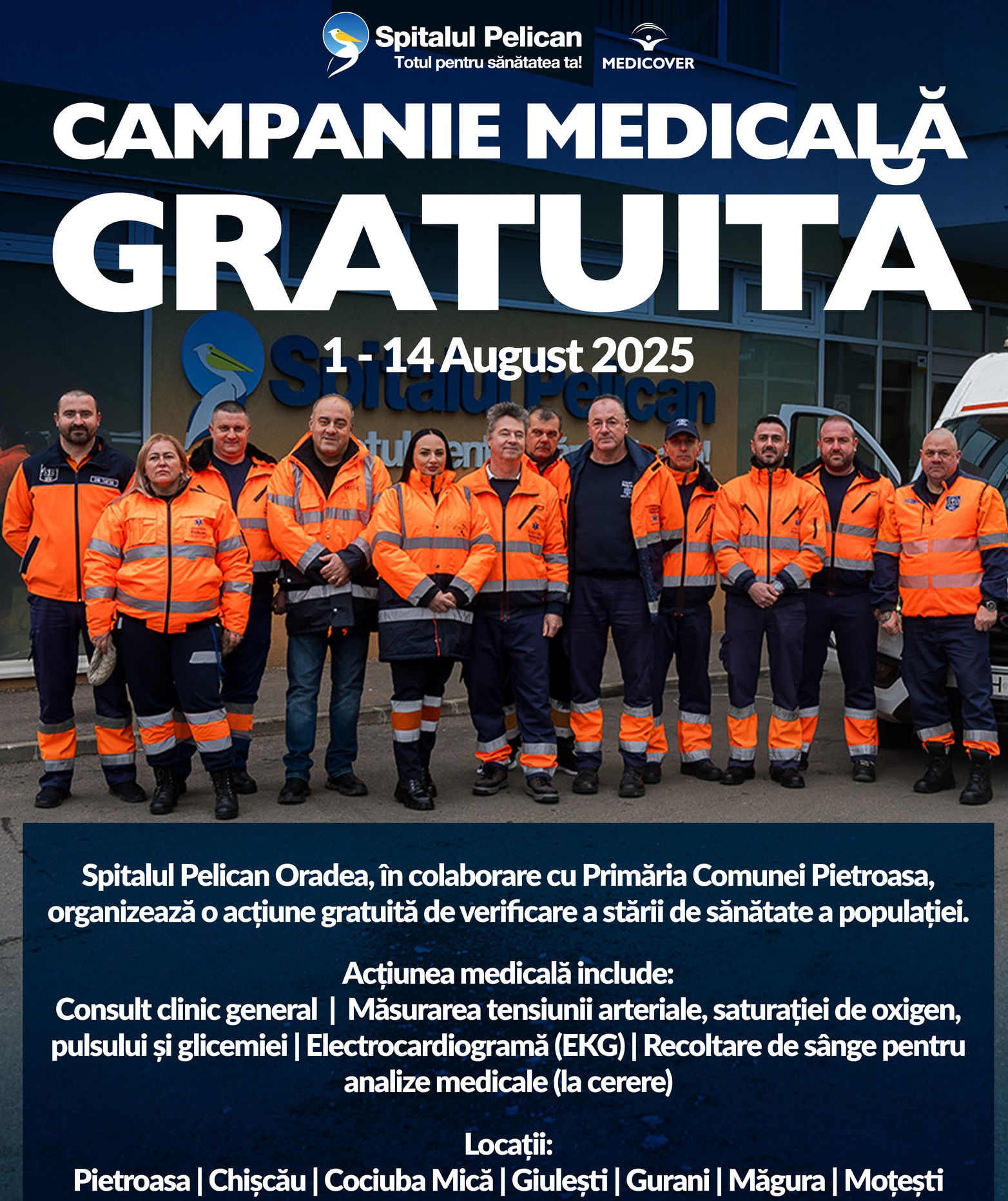 Sâmbătă, 31 ianuarie 2026, începând cu ora 9.00, la SPITALUL PELICAN Oradea v...