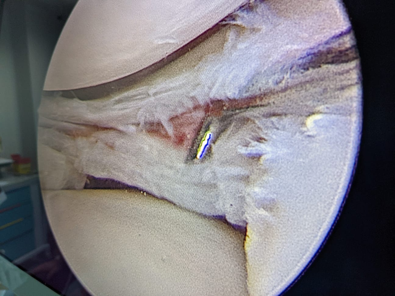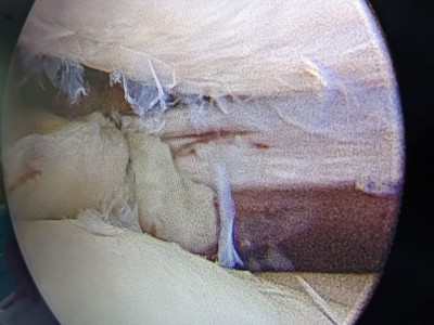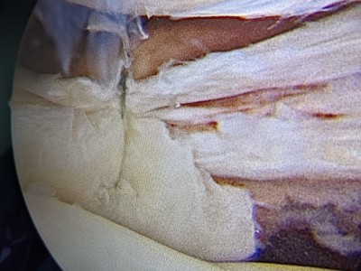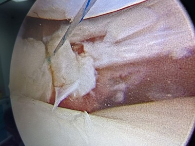 “Pacientul a suferit leziune gravă de menisc extern subluxantă, în langhetă, de corn posterior în totalitate și clivaj orizontal al părții medii meniscale externe. Am efectuat sutura de menisc extern, corn posterior, cu 2 ancore (prin tehnică în lasou) și partea medială, pentru ruptura veche în toartă de coș, ruptă după al doilea traumatism.