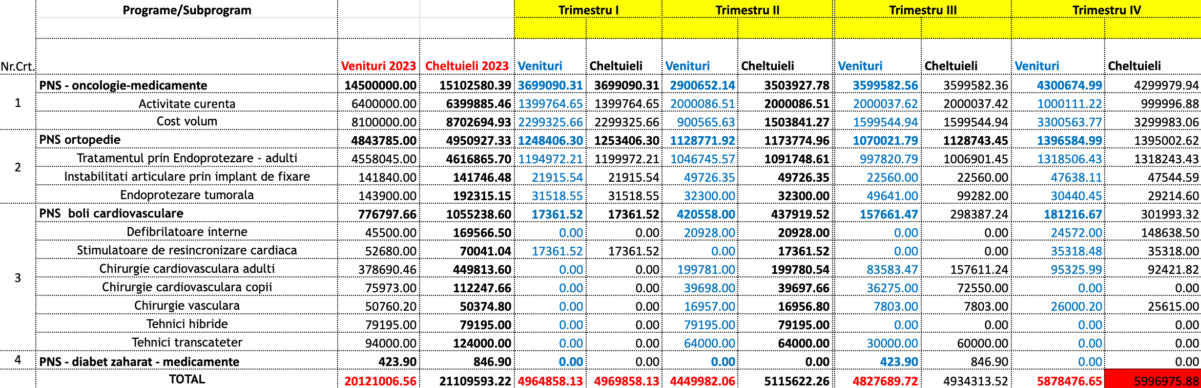 Buget venituri si cheltuieli – Programe Nationale de Sanatate in 2023