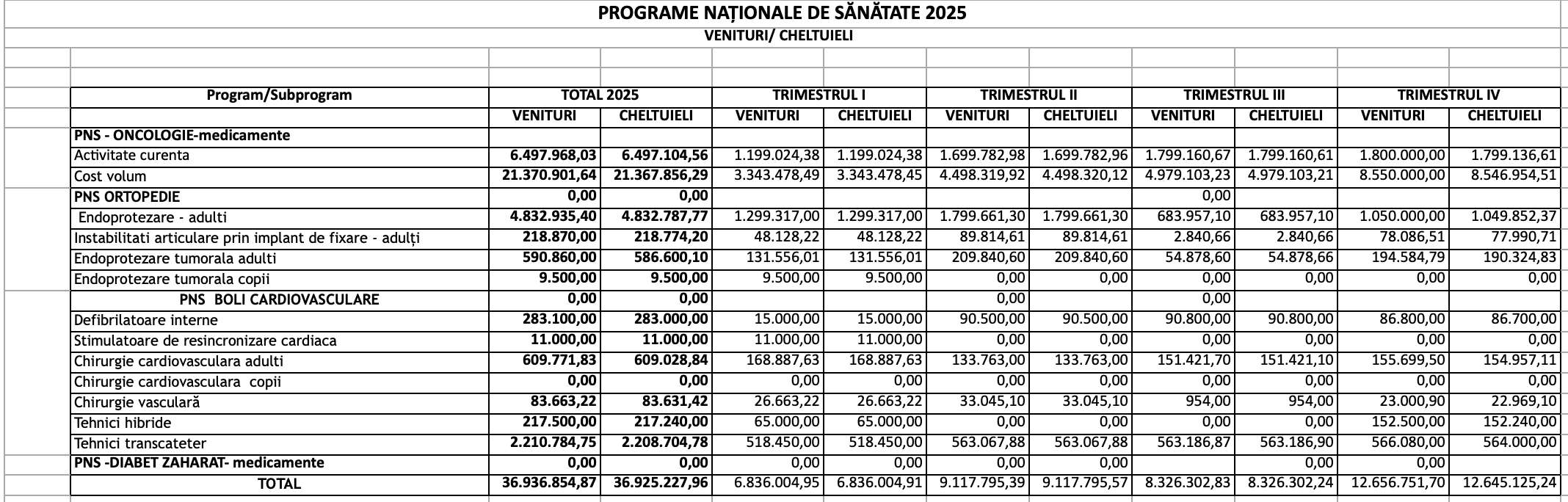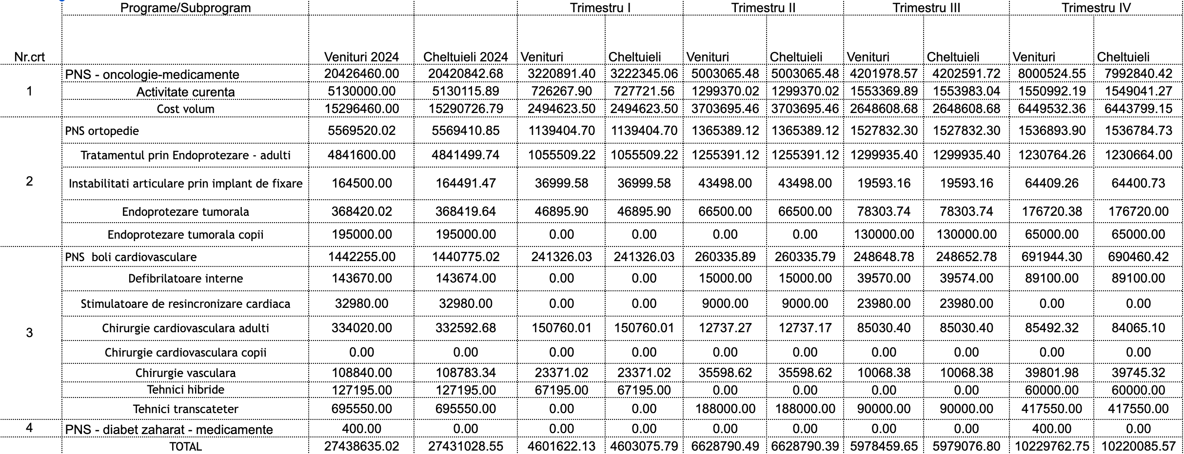 Buget venituri si cheltuieli – Programe Nationale de Sanatate in 2024